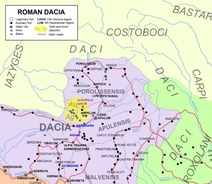 A teraz sa znovu pozrieme do historickej Peutingerovej mapy: ›› https://upload.wikimedia.org/wikipedia/commons/5/50/TabulaPeutingeriana.jpg, kde na jej vrchu medzi nápismi Lupione Sarmate a Venadi Sarmate je nakreslený veľký dom s modrou plochou v strede. Je nazvaný „Ab aquae“. Slovensky „Z vody“. Na mape, v jej iných častiach ale vidíme viacero podobných objektov dokonca značených ako „Aquius calidis, Aqvis calidis“, čo v preklade znamená kúpele s teplou vodou. Podľa Peutingerky tieto objekty sú nakreslené väčšie, ako rímske pevnosti. Z mapy je zrejmé, že kúpele Ab aquae boli vybudované už za Rimanov a títo si ich nesmierne cenili. Na mape toto miesto je utvrdené aj tým, že cesta z nich smerovala cez pevnosť Petris, veľkú pevnosť Germisariu, ktorých základy sa neďaleko zachovali. Cesta je ďalej značená cez Blandianu – dedinu, ktorá sa tak volá aj dnes, do Apula, čo je starý názov Balgradu, dnešnej Alba Iulii. Dôkaz o tom, že Ab aquae naozaj boli rímske kúpele: